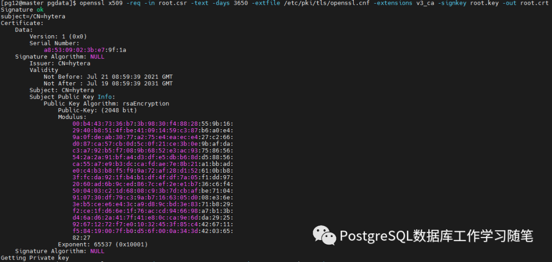 然后,使用密钥对请求进行签名以创建根证书颁发机构(使用Linux上的默认OpenSSL配置文件位置):