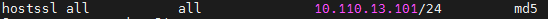 修改数据库服务器pg_hba.conf文件只允许客户端使用hostssl连接: