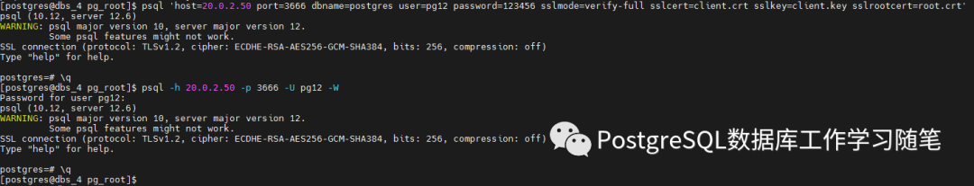 要求客户端提供受信任的证书,把你信任的根证书颁发机构(CA)的证书放置在数据目录文件中。并且修改postgresql.conf中的参数ssl_ca_file到新的文件名, 还要把认证选项 clientcert=verify-ca或clientcert=verify-full加入到pg_hba.conf文件中合适的hostssl行上。然后将在 SSL 连接启动时从客户端请求该证书(一段对于如何在客户端设置证书的描述请见第 33.18 节 )。