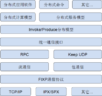 管理上述基础服务的是分布式总线。分布式总线建立FIXP通信协议基础上。FIXP通信协议是一种专属私有的二进制通信协议,底层对接各种标准化协议,支持的通信包括流通信、包通信、Keep UDP通信、RPC调用。数据传输是类似5G网络的Massive MIMO通信,能够在不改变网络基础设备情况下,将传输效率提高5-20倍,极大减少分布处理的时延,对大规模的分布式存储和分布式计算业务非常重要。Invoke/Produce模型负责全局的业务流程编排和运行调度。