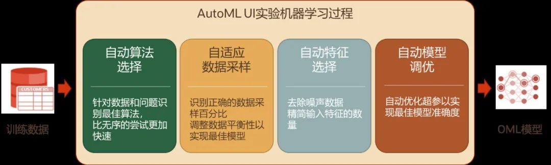 使用 OML AutoML UI,用户创建实验,使机器学习建模过程无代码和自动化,特别是简化其中耗时和重复的活动: