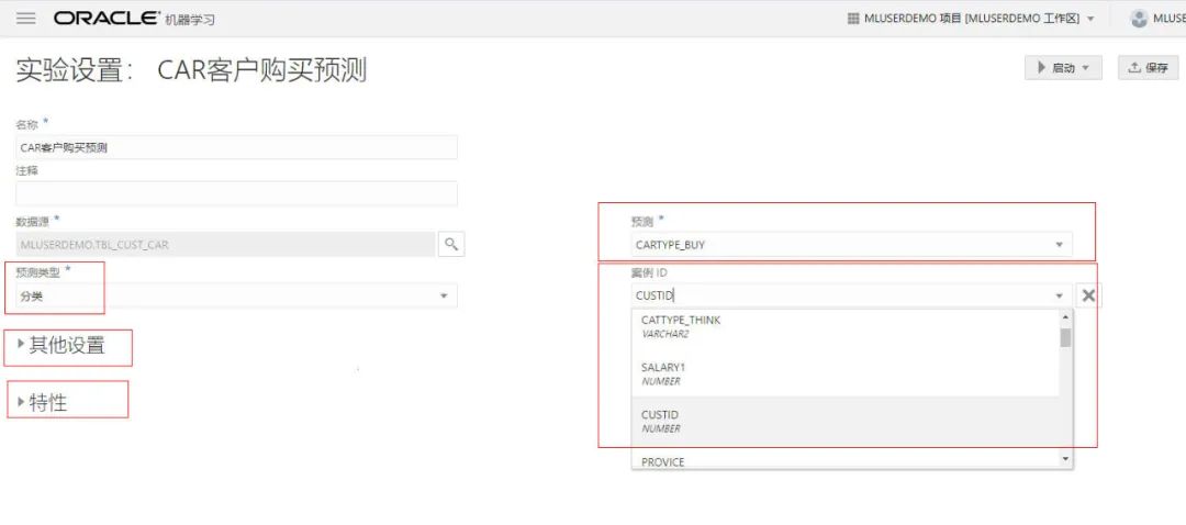下面我们就结合实战来介绍一下OML AutoML UI如何加速机器学习模型生成和使用。这个场景使用的是车企客户销售历史数据,企业期望通过机器学习,能够对哪些客户倾向于购买哪类车型进行预测,从而更好指导针对新客户的广告投放和营销活动。