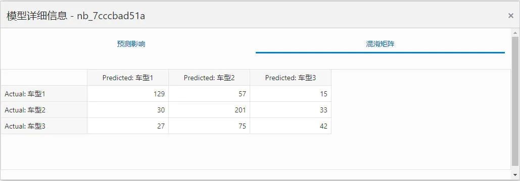 我们关闭弹窗,点击列表中某个算法,通过链接弹出窗口,可以浏览具体算法的预测影响和混淆矩阵。同时可以选择某个算法行,点击列表上方,对结果进行操作:
