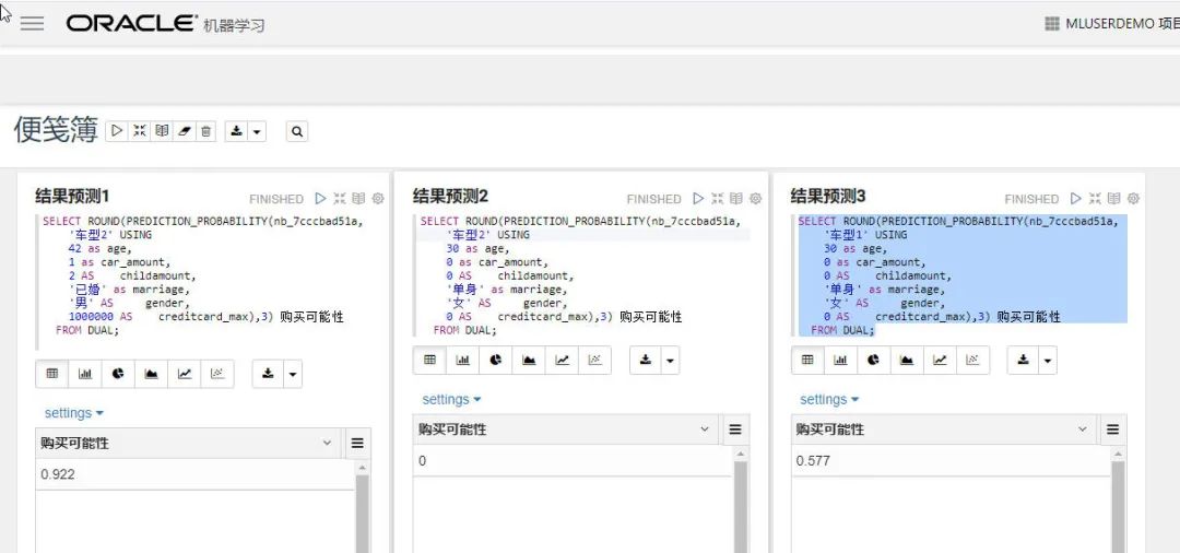 当然,用户也可以直接通过数据库中的 SQL 查询使用这些模型,也可以通过Oracle分析云或Oracle APEX调用使用。