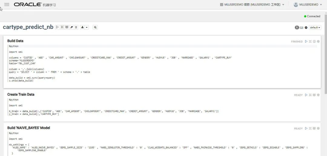 使用 OML4Py API 自动化生成选择的模型的NoteBook