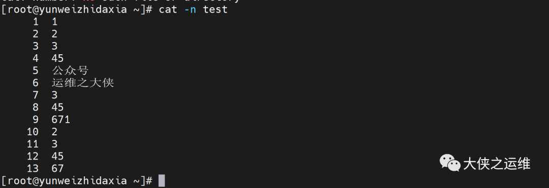 -n 或 --number:由 1 开始对所有输出的行数编号。