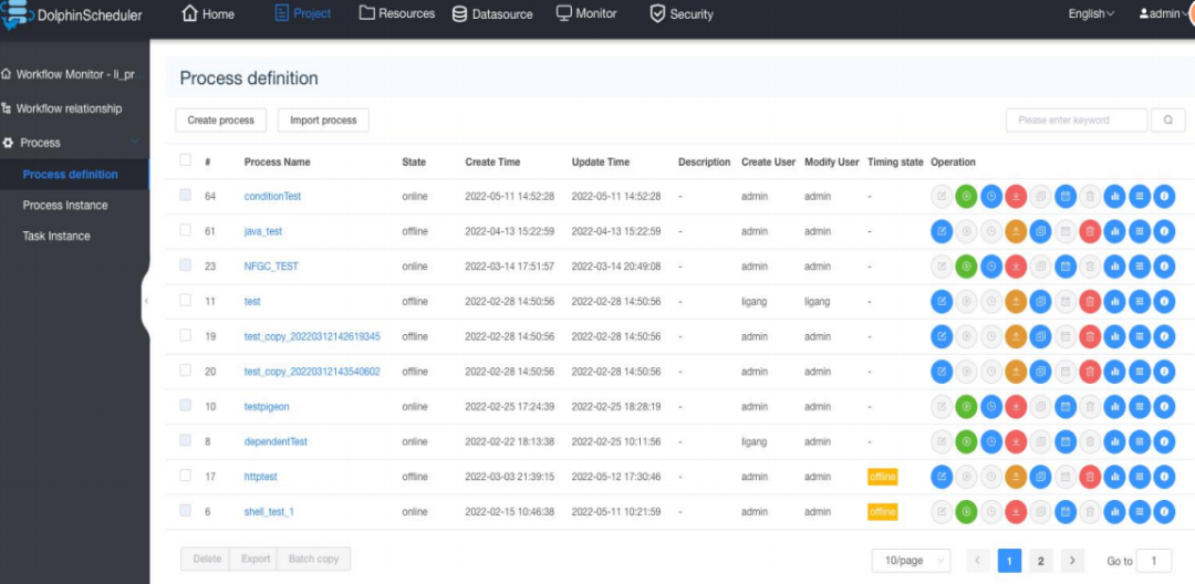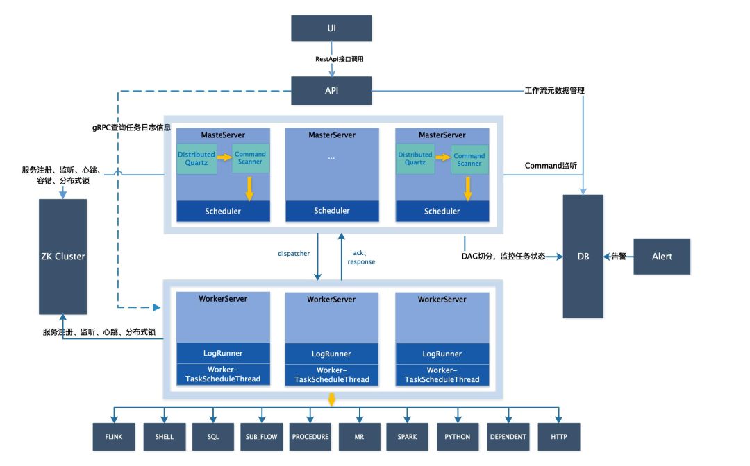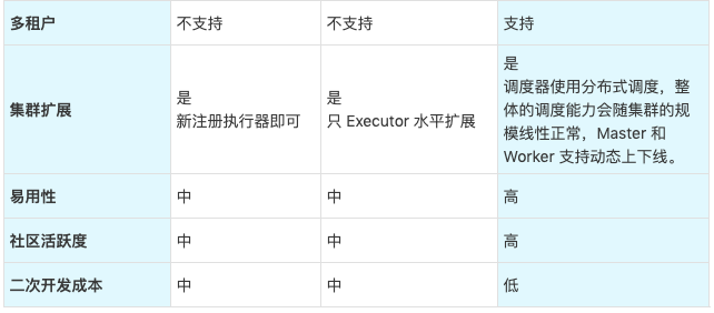 高可靠,支持集群HA,集群去中心化。 简单易用,DAG 监控界面,所有流程定义可视化,通过托拉拽任务定制 DAG,通过 API 与第三方系统对接,支持一键部署。 丰富的使用场景,支持多租户、多种任务类型、支持暂定恢复等操作。 高扩展,Master 和 Worker 支持动态上下线、支持自定义任务类型。 社区活跃度高。