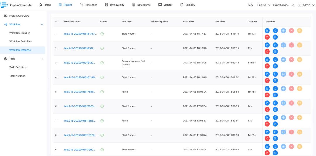 易操作,通过 UI 方便手动调度、手动暂停/停止/恢复,同时支持失败重试/告警、从指定节点恢复失败、Kill 任务等操作。
