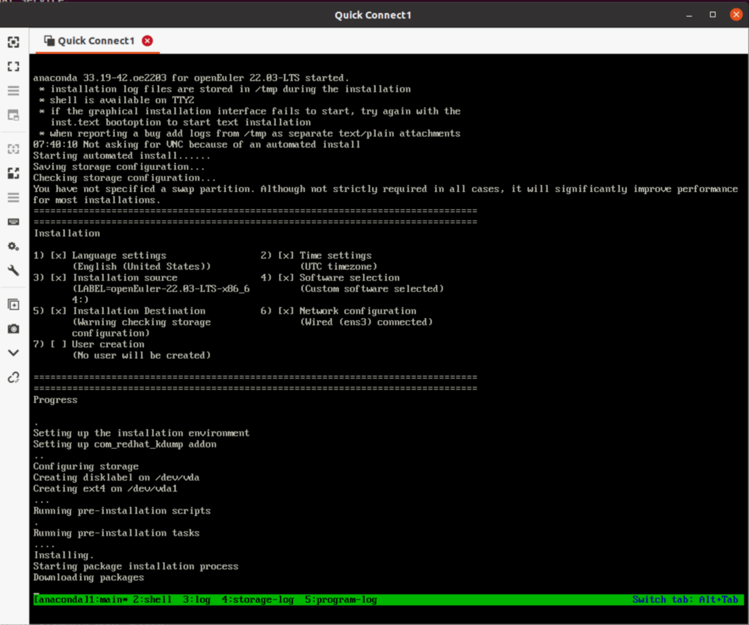 Packer 构建依赖于 kickstart配置文件并等待其所创建的虛拟机在完成安装之后自动关机,通过 vnc 来监控日志输出的错误对调试问题极其有用。如果有Ubuntu 桌面系统,可以使用 Remmina 等 VNC 客户端进行访问。vnc 端口可以在packer构建的输出中找到。