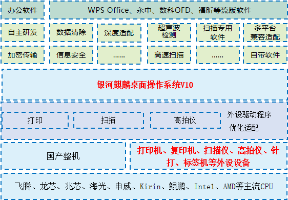 以银河麒麟桌面操作系统V10为支点,提供安全、可信的系统环境。