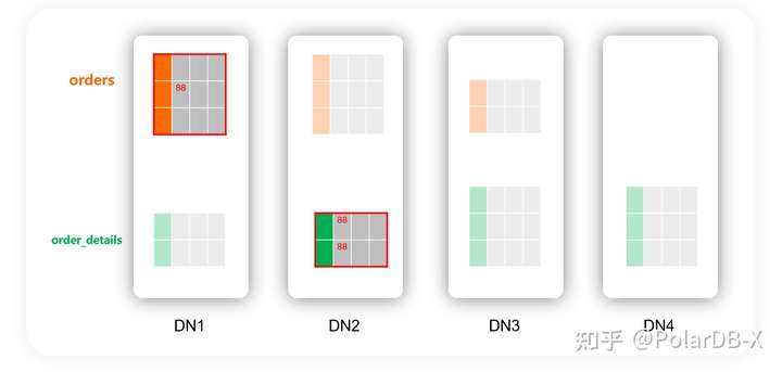 由于JOIN的条件要求两个表的分区键(buyer_id)相等,如果orders与order_details在同一个表组中,那么JOIN实际上只会发生在同一个分区组内(表组内编号相同的或者说对齐的分区称为一个分区组)。而分区组一定在同一台DN上,那代表这个JOIN操作可以由DN来完成。这就是JOIN的下推。