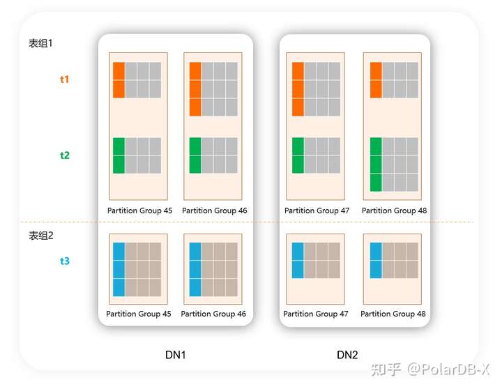流程上应该是这样的: 1. 建表时,同样分区算法、分区数的表会自动分配到同一个表组中: