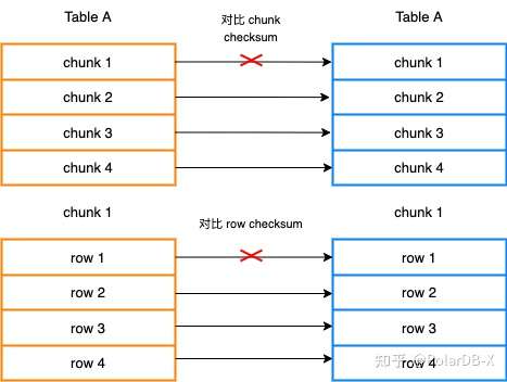 当目标库与源库的数据延迟达到秒级时,我们认为两库基本达到了一致状态。此时进入数据校验阶段,从外围保障数据的一致性。我们设计了基于 chunk checksum 的校验算法校验数据一致性。