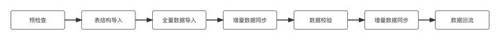 与文件数据导入不同的是,在线数据导入由于源端数据系统不停产生新的数据,数据导入并没有一个“完成”时间,我们需要持续同步源端新产生的数据。一个完整的在线同步步骤为: