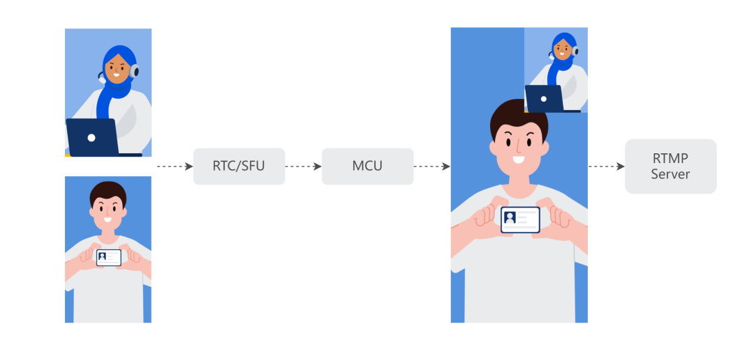 而 MCU 后台处理了这种模式之间交替切换的问题,通过缓存 GOP 的方式解决从单主播切换到连麦模式的场景,通过等待新的 GOP 的方式解决从连麦模式切换到单人模式的场景。