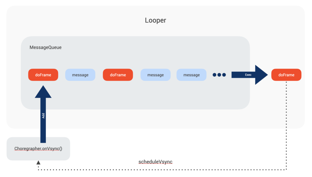 的消息,在合适的帧绘制时间点将消息抛到主线程消息队列去执行的。