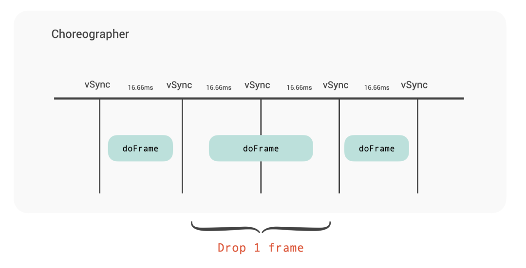 不能及时被执行,表现在体验上,就是设备绘制丢了一帧。当这个间隔越大,丢帧表现就越明显,App 就越卡顿。
