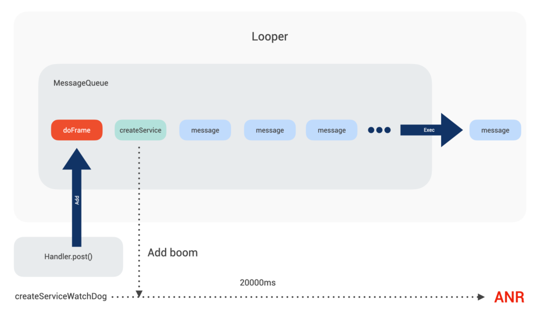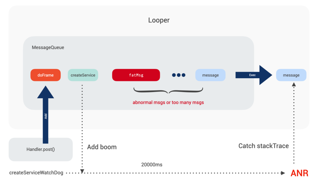 从前文分析可知,卡顿和 ANR 的产生原因都是特定类型消息在指定阈值内没有得到及时执行。这个阈值的时间有长有短。