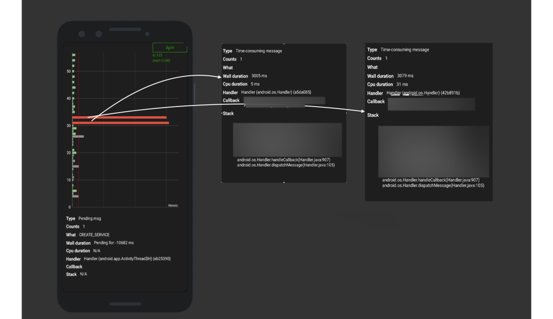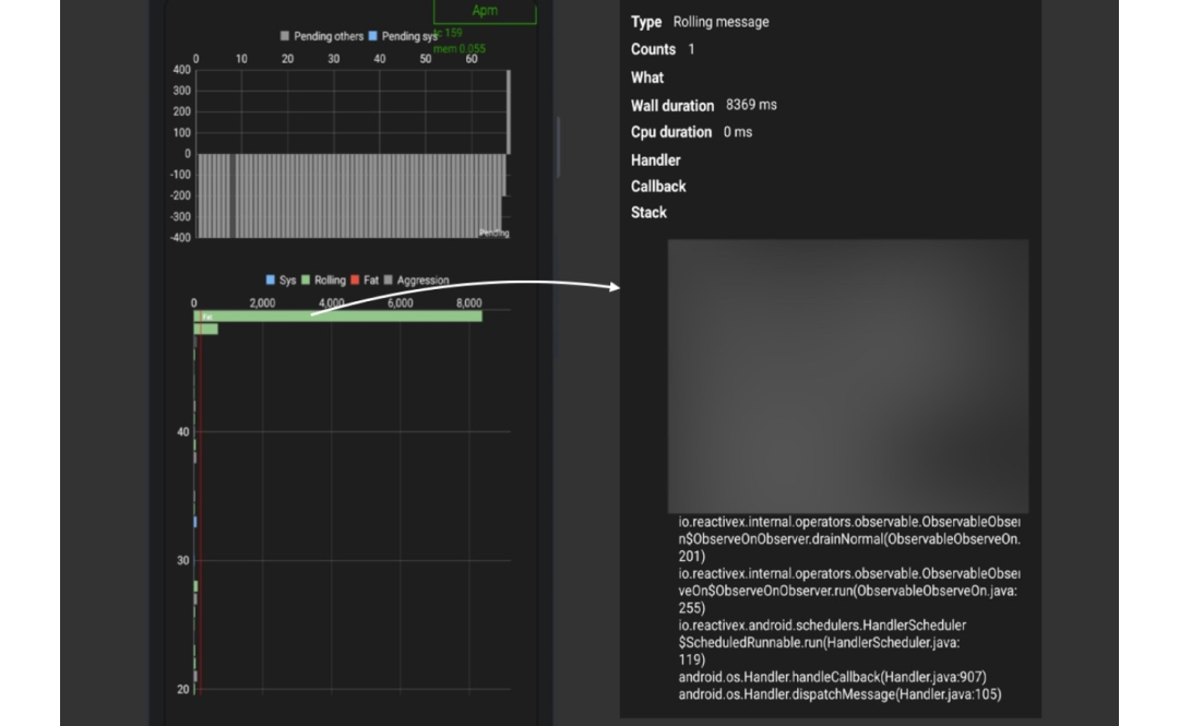 再往前递推 10s,发现历史还有两条严重耗时消息,总执行耗时超过 6s。这两条消息才是本次 ANR 发生的最大原因。业务方只有同时看到并解决了这两个问题,这次的 ANR 问题才可以被彻底解决。