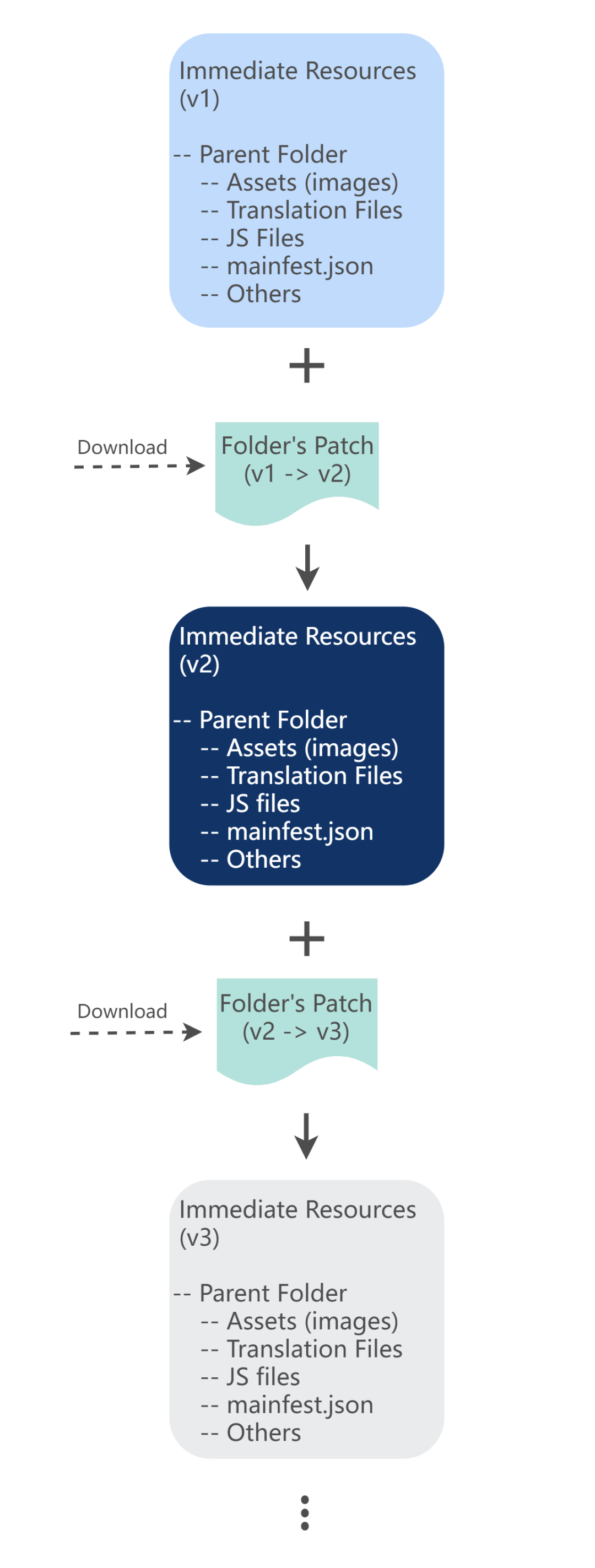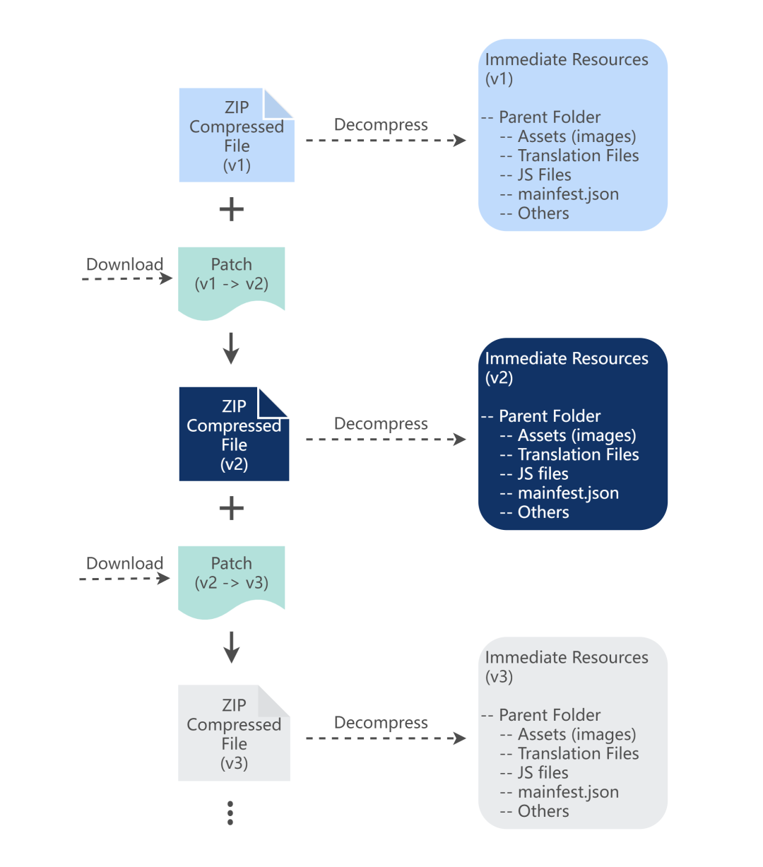 如果有新增图片和修改翻译文件等修改,需要发起多次 HTTP 请求到 CDN 下载文件,这样会复杂化更新的异常处理情况,比如部分文件下载过程中断的恢复问题。