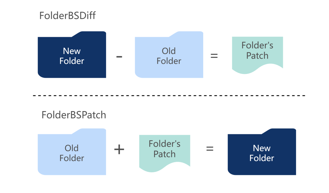 为解决上一章的问题,我们创新性地提出 FolderBsdp 方案。FolderBsdp 是以文件间的 Bsdp 算法为基础,对有目录层级结构的文件夹进行差分。具体来说,它由 FolderBSDiff(求差分)和 FolderBSPatch(打补丁)两个算法相结合。
