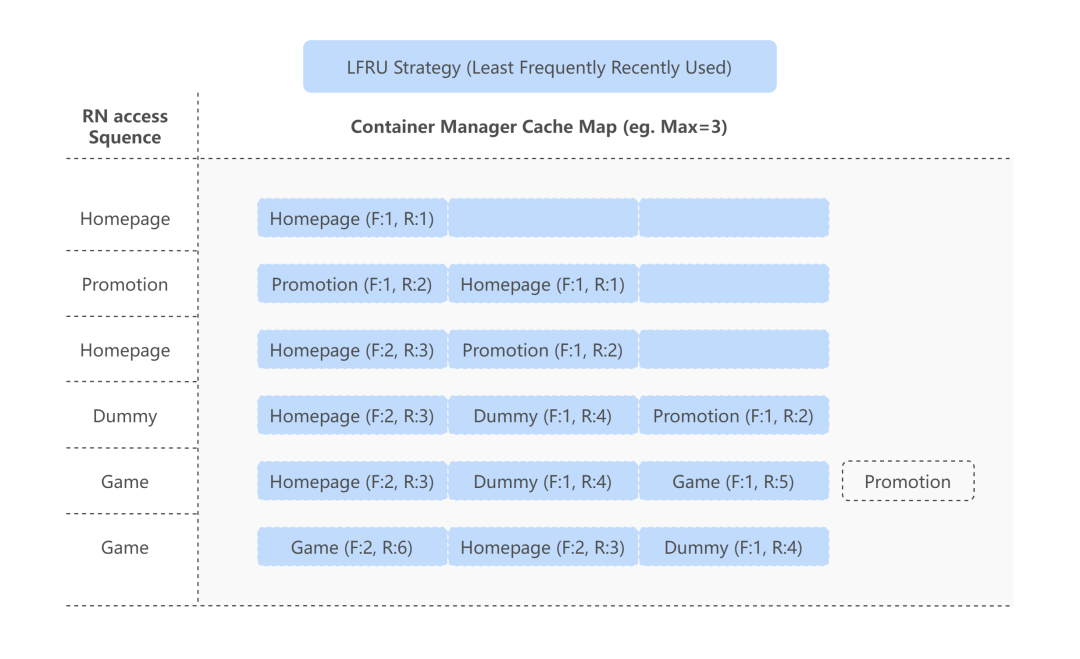 这里我们采用 Least Frequently Recently Used(简称 LFRU)的策略。当刚退出的应用被重新打开,该 JSContext 会被重新启用。这样,我们能够节省 85% 的首屏渲染时长。缓存个数管理是可配置的,业务方可以根据应用的规模作为合理的预估。当该 RN 页面还在使用中,即使超出预估数,该上下文也不会立即被回收,该设计有效地保证页面的可用性。