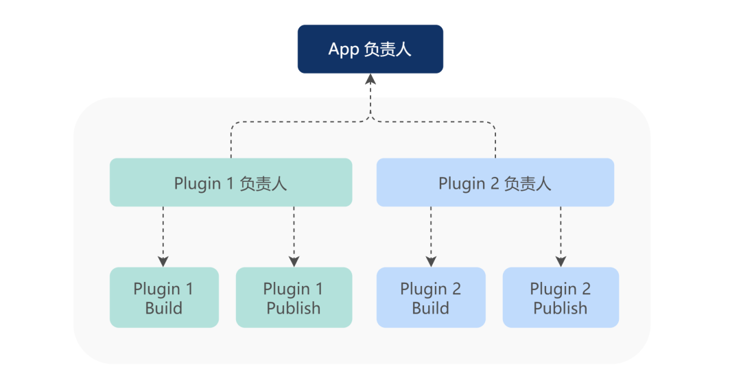 权限的管理呈树状结构,一个 App 对应着一个项目,项目负责人默认是 App 团队的项目负责人。创建一个全新的插件等系统操作需要项目负责人审批。一个 App 包含有多个 plugin,每个 plugin 负责人默认是相应的业务团队负责人,他有权限分配发布和构建的权限。
