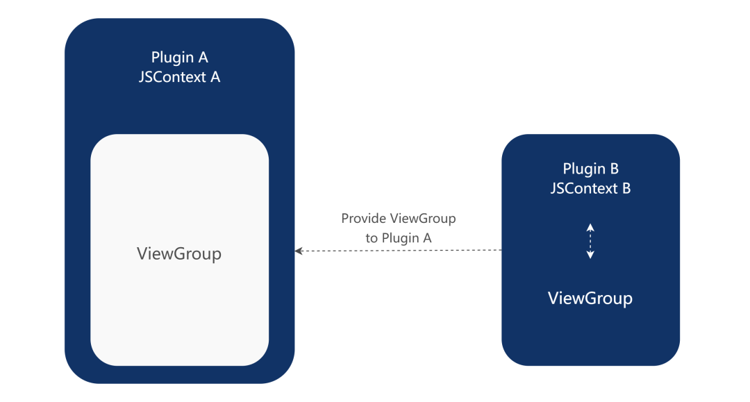 方案一是最理想的解决方案。但是考虑到迁移成本,我们也提供了方案二(一种“同屏渲染”嵌套组件)来支持这种场景,它类似一种 Native 组件。在多个 JSContext 的情况下,通过 plugin 名和页面名将所需要的内容嵌套到另一个页面当中。