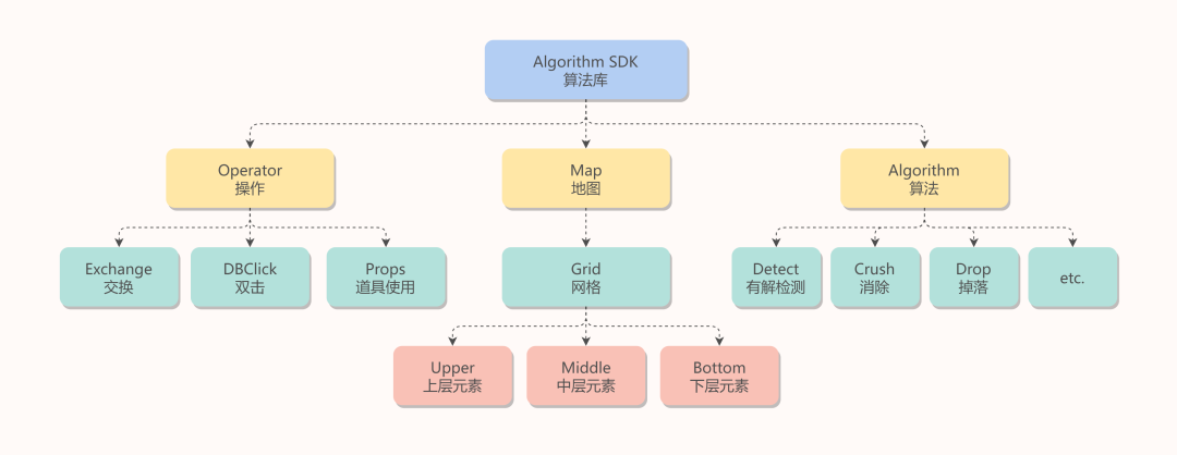 Algorithm 对 Algorithm SDK 的所有逻辑运算进行管理,包括:开局有解保证、有解检测、消除、掉落等,是整个 Algorithm SDK 的核心。