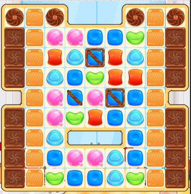 先来看其中一关的布局,场上可以消除的操作有多种可能性,如果把这些可能性看成一张网状结构的数据,模拟用户的操作无外乎就只有这些可能性。