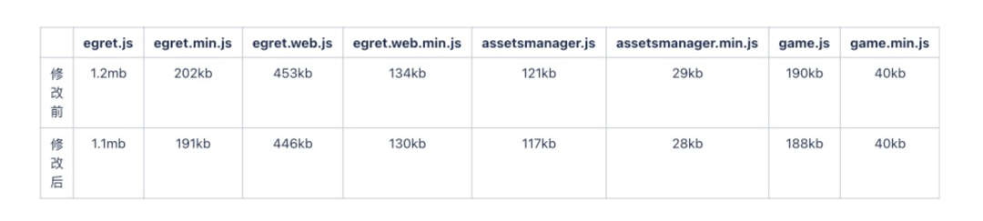最终,游戏前端 JS 加载量共减少 16KB,约 7%。这个体积看起来很小,但对于部分网络较差的地区,少量的体积优化也是有价值的。