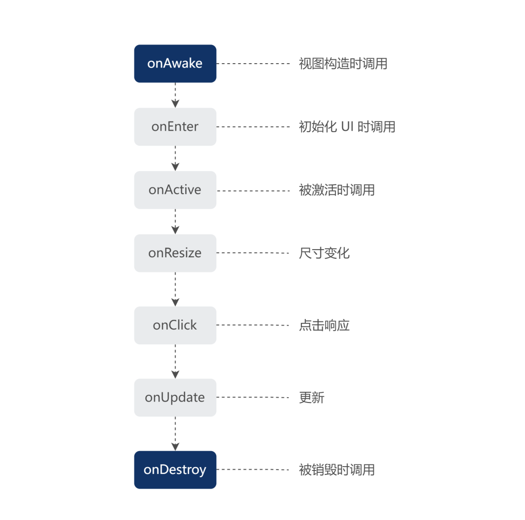 我们为 UI 组件提供了一些生命周期的钩子函数方便游戏业务使用,开发者实现每个 UI 类时不必再单独实现事件监听和移除。同时,内置的事件管理也避免了开发者可能因开发遗漏而导致的内存泄漏问题。