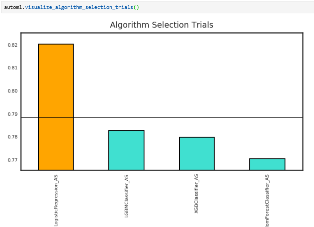 Oracle ADS AutoML的目标是使用户的机器学习流程自动化,并使其尽可能无缝衔接。下面我们只需使用2行Python代码,即可实现包含算法选择、特征选择、超参数选择的AutoML全自动化建模流程: