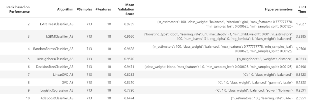 如上代码所示,如果用户没有指定算法,ADS会从10大类算法中自动优化选择,有一定经验的用户还可以指定相关的训练目标和算法选择范围等,如: