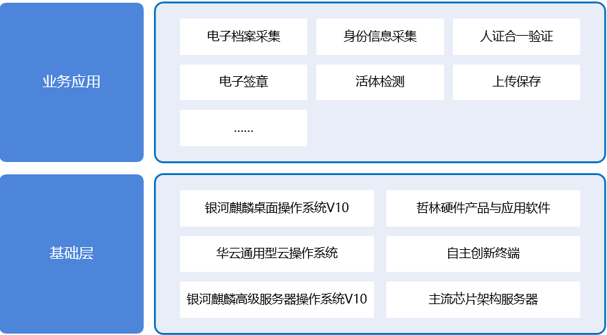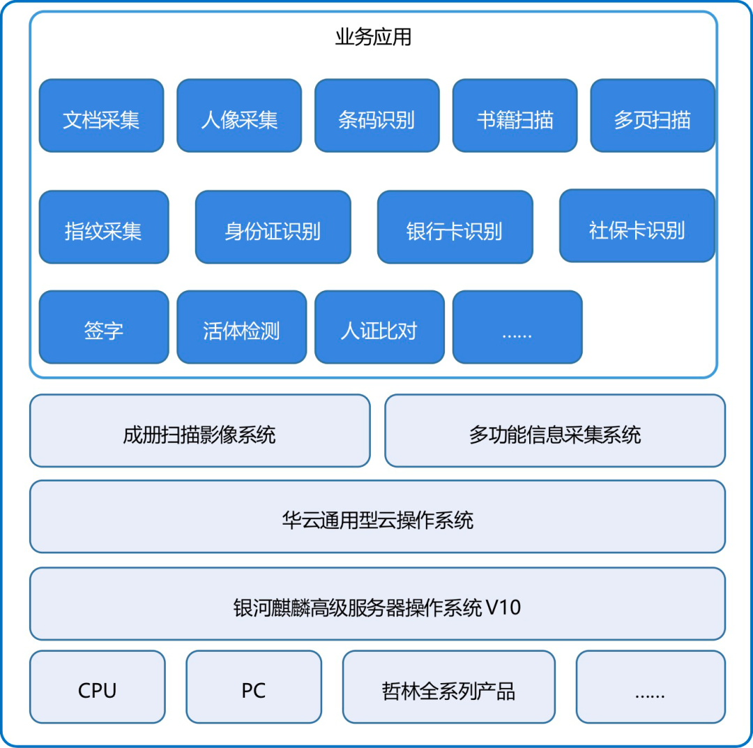方案以基于自研KYSEC安全架构、内生安全的银河麒麟高级服务器操作系统V10为安全基础底座,华云通用型云操作系统为云平台管理软件,结合云计算本身的高可用、弹性特性以及底层操作系统的广泛适配性,共同承载高拍仪、成册扫描影像系统以及多功能信息采集系统在内的多款无纸化智慧办公产品。本方案可适用于多行业协同办公,智能办公等办公场景,根据业务系统实际需求,可提供文档影像采集、人像采集、卡信息识别、指纹采集、活体检测、人证比对等无纸化业务受理的应用功能模块,助力用户推进内部无纸化办公的进程,同时基于云化场景,达到数据的统一存储,实现数据的安全性。