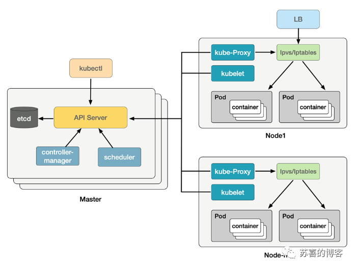 API Server。核心功能是提供Kubernetes各类资源对象的增、删、改、查及Watch等HTTP REST接口,成为集群内各个功能模块之间数据交互和通信的中心枢纽,是整个系统的数据总线和数据中心。除此之外,它还是集群管理的API入口,提供了完备的集群安全机制。API Server是由多实例同时工作,各个组件通过负载均衡连到具体的API Server实例上。