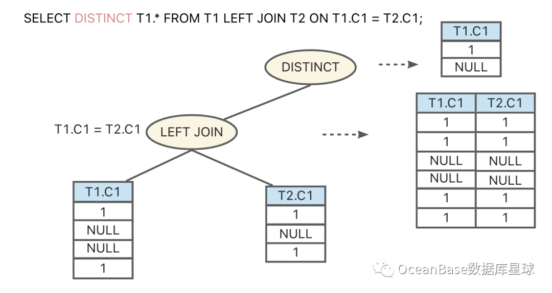 --Q3和Q4等价Q3:SELECT DISTINCT T1.* FROM T1 LEFT JOIN T2 ON T1.C1 = T2.C1; Q4:SELECT DISTINCT T1.* FROM T1;
