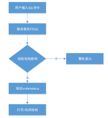 对于钱包自身来说,支持设置钱包密码。在数据库使用或关闭钱包时需要先通过钱包密码验证,否则将不能使用钱包。创建加密对象时,钱包必须处于OPEN的状态;若钱包处于CLOSE的状态,则不能创建加密对象。修改钱包密码时,钱包必须处于CLOSE的状态。安全管理员可以通过SQL命令修改钱包密码。