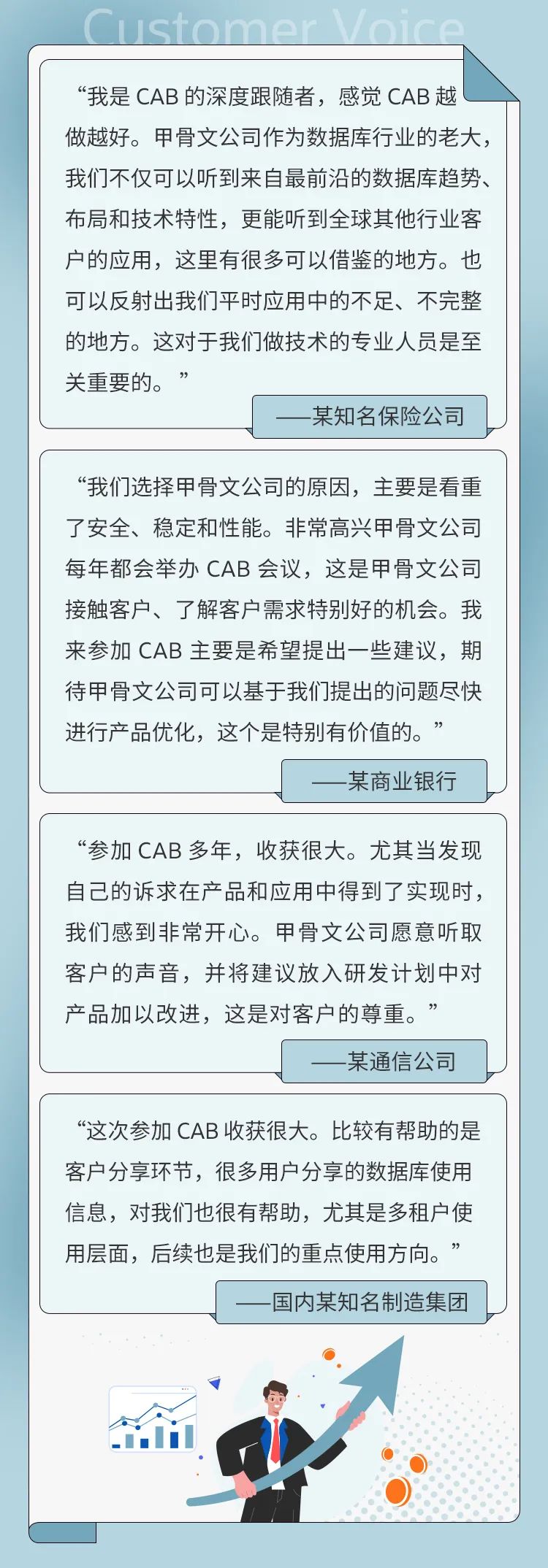 本次会议中,有两位参加了 CAB 十年的客户粉丝表示:参加 CAB 十年,让他们最骄傲的事情是——他们和其他中国客户在 CAB 上提出的很多要求,都已经被甲骨文公司数据库研发团队认真听取并采纳,目前已经成为数据库标准功能供全球用户采用。正是这样的体验,让他们十年来一直坚持积极参与 CAB 活动。
