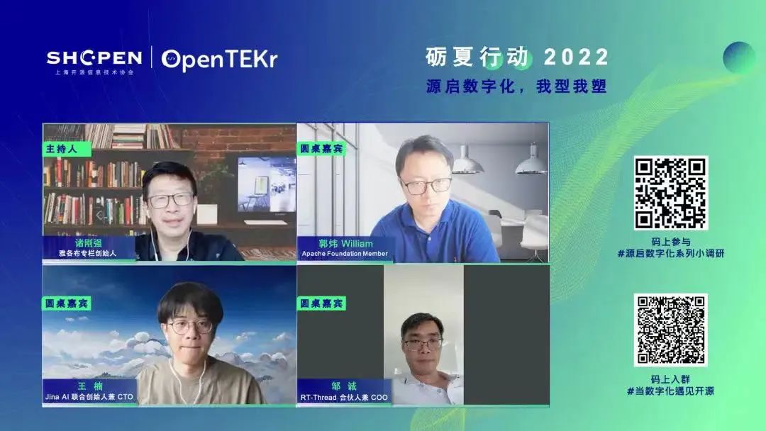 在励夏行动 2022 的甲方圆桌上,Apache Foundation Member,Apache DolphinScheduler PMC,Apache 孵化器导师,ClickHouse 华人社区创始人 郭炜(郭大侠),诸刚强专栏创始人,前 NIKE 大中华区 CIO诸刚强,Jina AI 联合创始人兼 CTO王楠,以及RT-Thread 合伙人兼 COO 邹诚,围绕开源产品、开源公司和开源核心团队,以及开源未来的发展和形式进行了深入讨论,文字摘要整理如下: