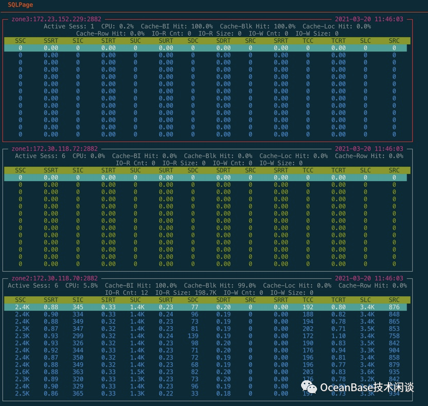 | SQL Page | observer | 每个节点的性能数据 | ||