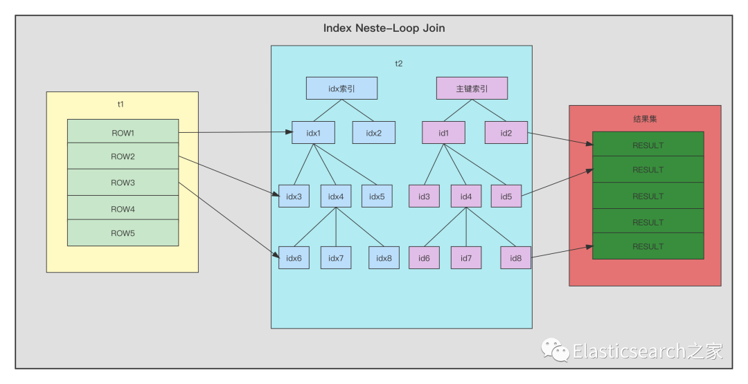 。遍历循环t1表的数据,去t2表全表扫描,符合条件的筛选出来,组装成数据集,这种JOIN方式,跟Index Neste-Loop Join