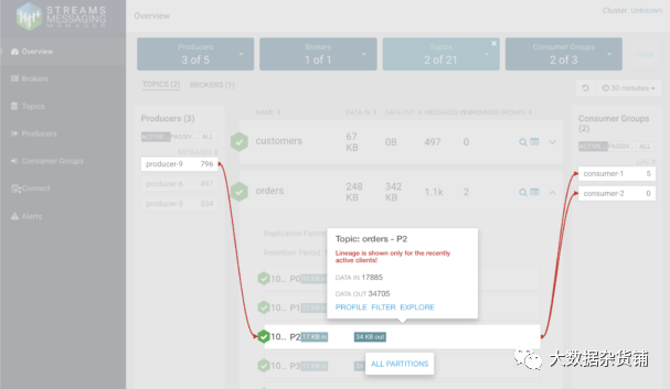 CSP-CE 包括一个单节点 Kafka 服务和 SMM,这使得管理和监控您的 Kafka 服务变得非常容易。使用 SMM,您无需使用命令行来执行主题创建和重新配置等任务、检查 Kafka 服务的状态或检查主题的内容。所有这些都可以通过一个 GUI 方便地完成,该 GUI 为您提供服务的 360 度视图。