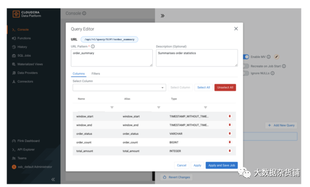 SQL Stream Builder :运行在 Flink 之上的服务,使用户能够使用 SQL 创建自己的流处理作业。