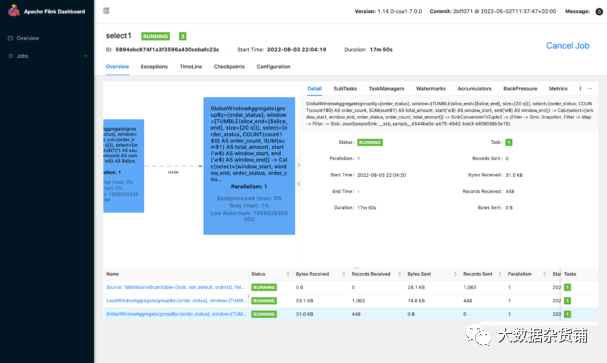 Flink Dashboard 显示 Flink 作业图和指标计数器