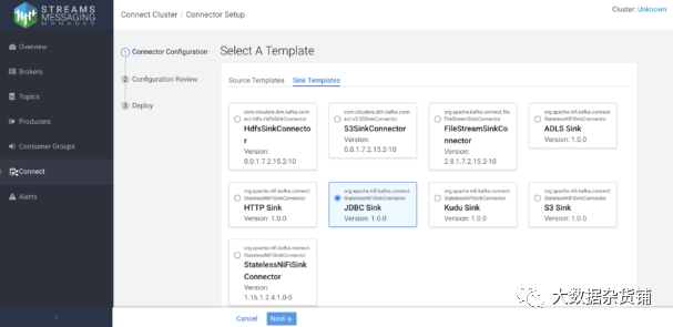Kafka Connect 还与 SMM 集成,因此您可以从 SMM GUI 全面操作和监控连接器部署。要运行新的连接器,您只需选择一个连接器模板、提供所需的配置并进行部署。
