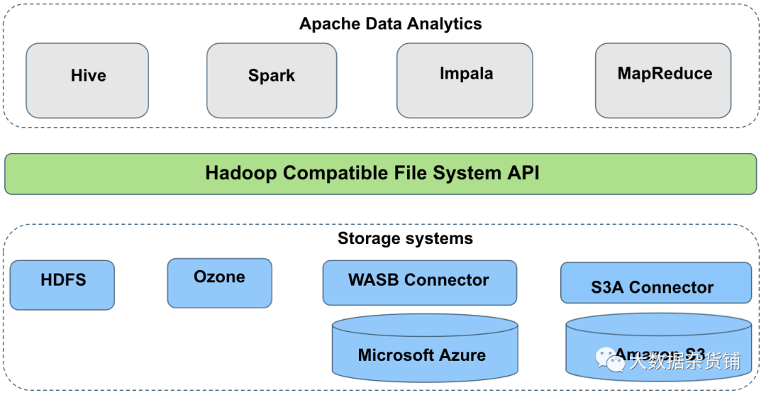 Apache 数据分析传统上假设重命名和删除操作是严格原子的。大多数数据分析工具,如 Apache Hive、Apache Impala、Apache Spark、MR 等,经常将输出写入临时位置,然后在作业结束时将其重命名为公开可见。例如,Hive 和 Impala 的作业提交者需要目录列表的一致性和重命名操作的原子性。因此,查询的性能直接受到中间重命名操作完成速度的影响。这意味着读者在全有或全无的基础上观察到工作输出。下面是 Apache 数据分析以及 Apache HDFS、Apache Ozone、类似 S3 的对象存储等存储系统之间的交互的高级视图。尽管 Ozone 是一个对象存储,但它不需要任何特殊的输出提交者。