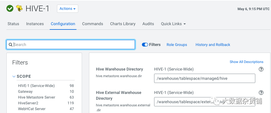 迁移后,将(hive.metastore.warehouse.dir)设置为 Impala 托管表所在的/user/hive/warehouse。