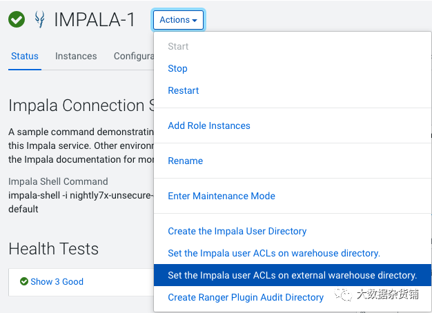 Impala >操作菜单>在外部仓库目录上设置 Impala 用户 ACL
