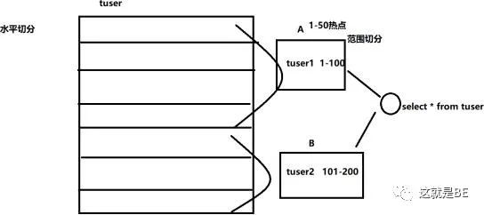 ③ 按照范围:可以对某一列按照范围进行切分,不同的范围切分到不同的表或者数据库中。